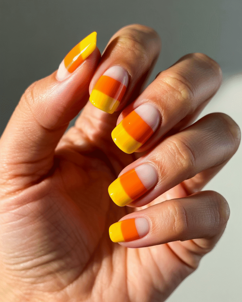 The sweet side of Halloween β orange, yellow, and white stripes.
