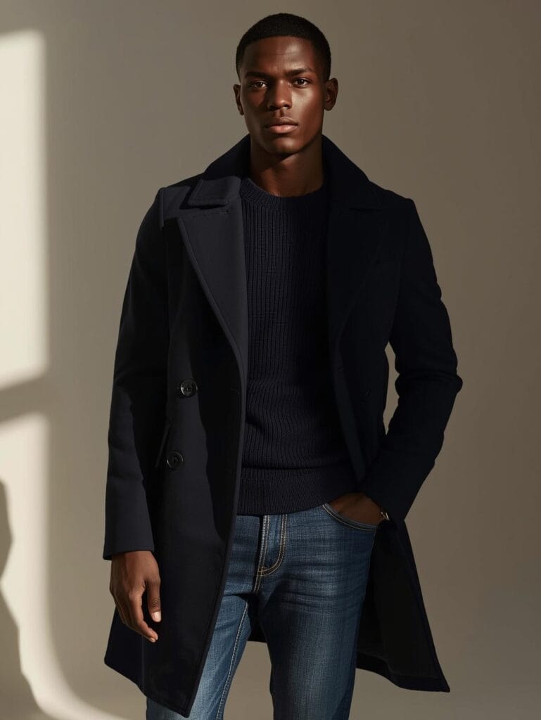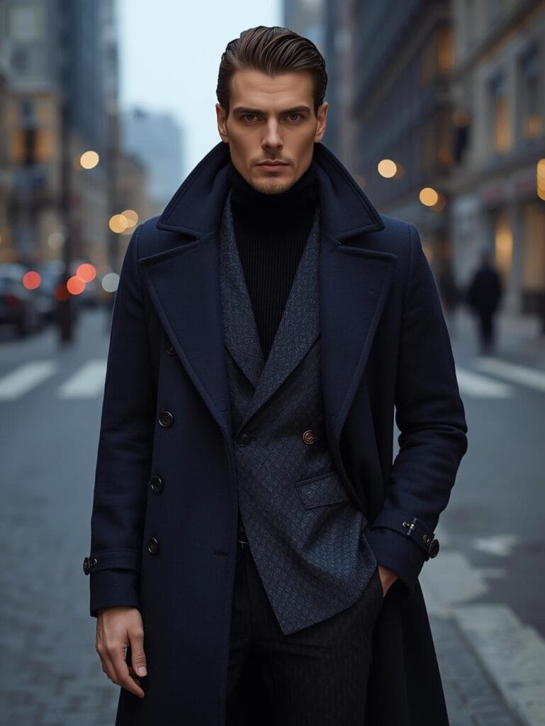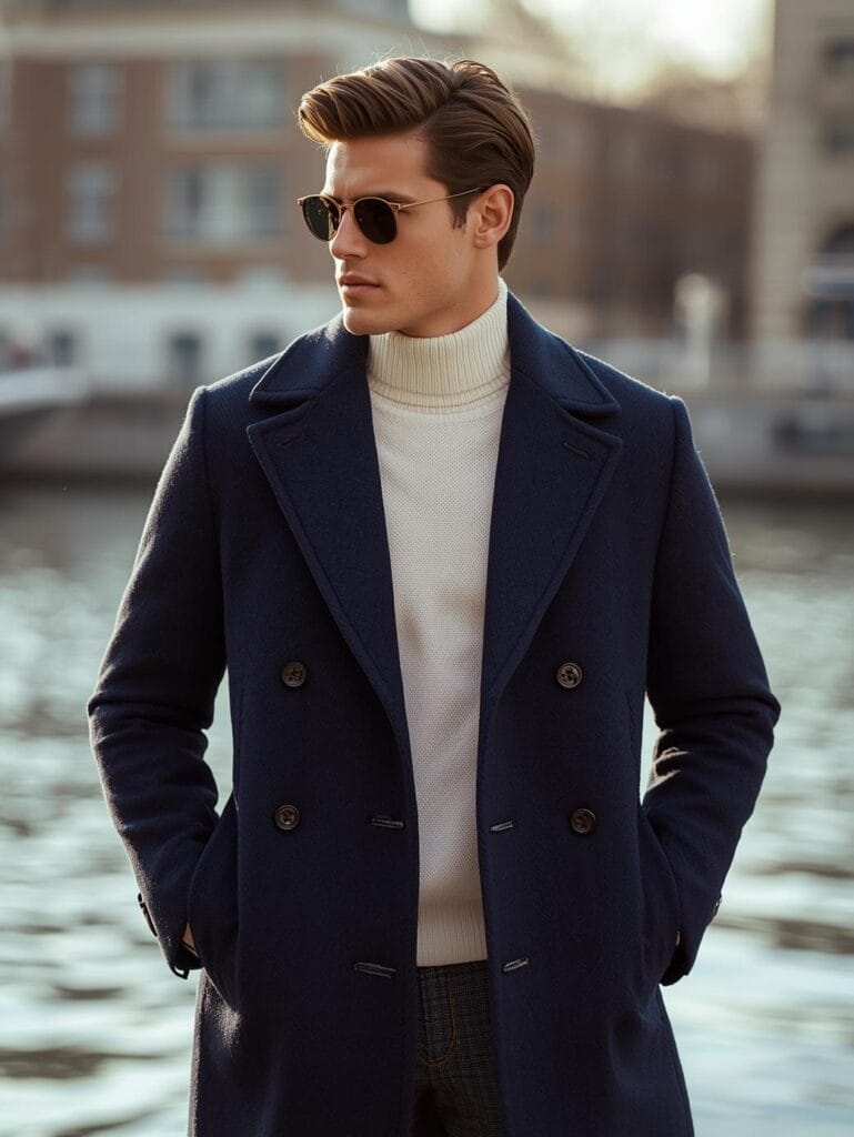 24. The Navy Overcoat & Turtleneck Duo