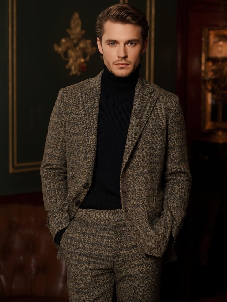 16. The Turtleneck & Tweed Suit Combo