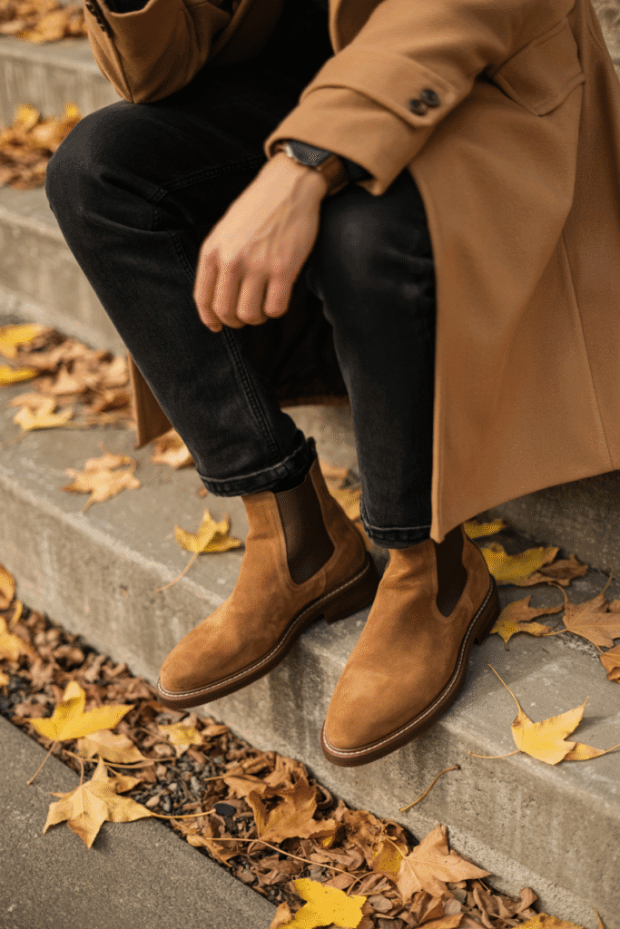 1. The Camel Coat & Chelsea Boots Combo