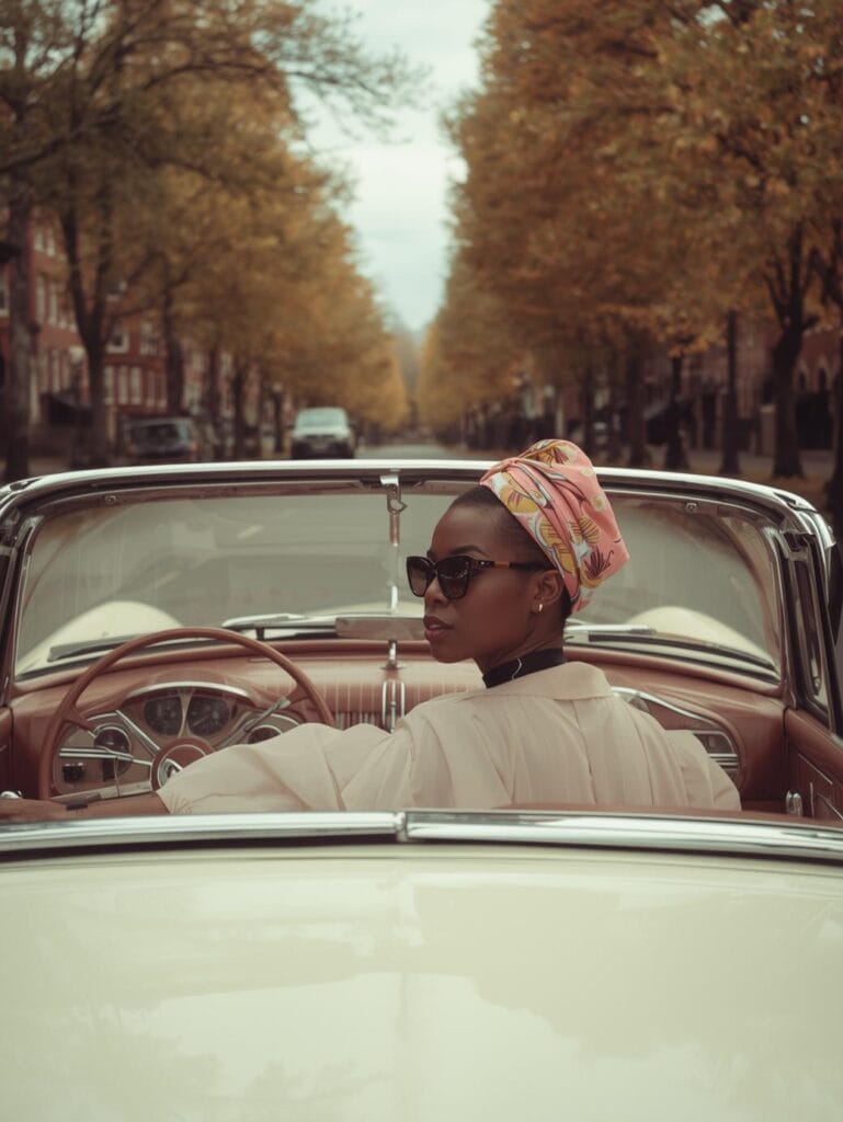 Silk and satin scarves are perfect for this — they protect your hair while adding vintage sophistication.