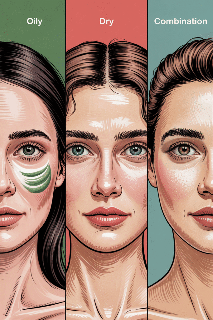 Target oily T-zone with lightweight products and hydrate dry areas.