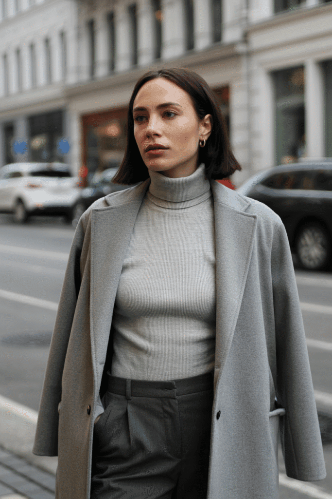 This cool-toned outfit feels modern, minimalist, and effortless — perfect for city life.